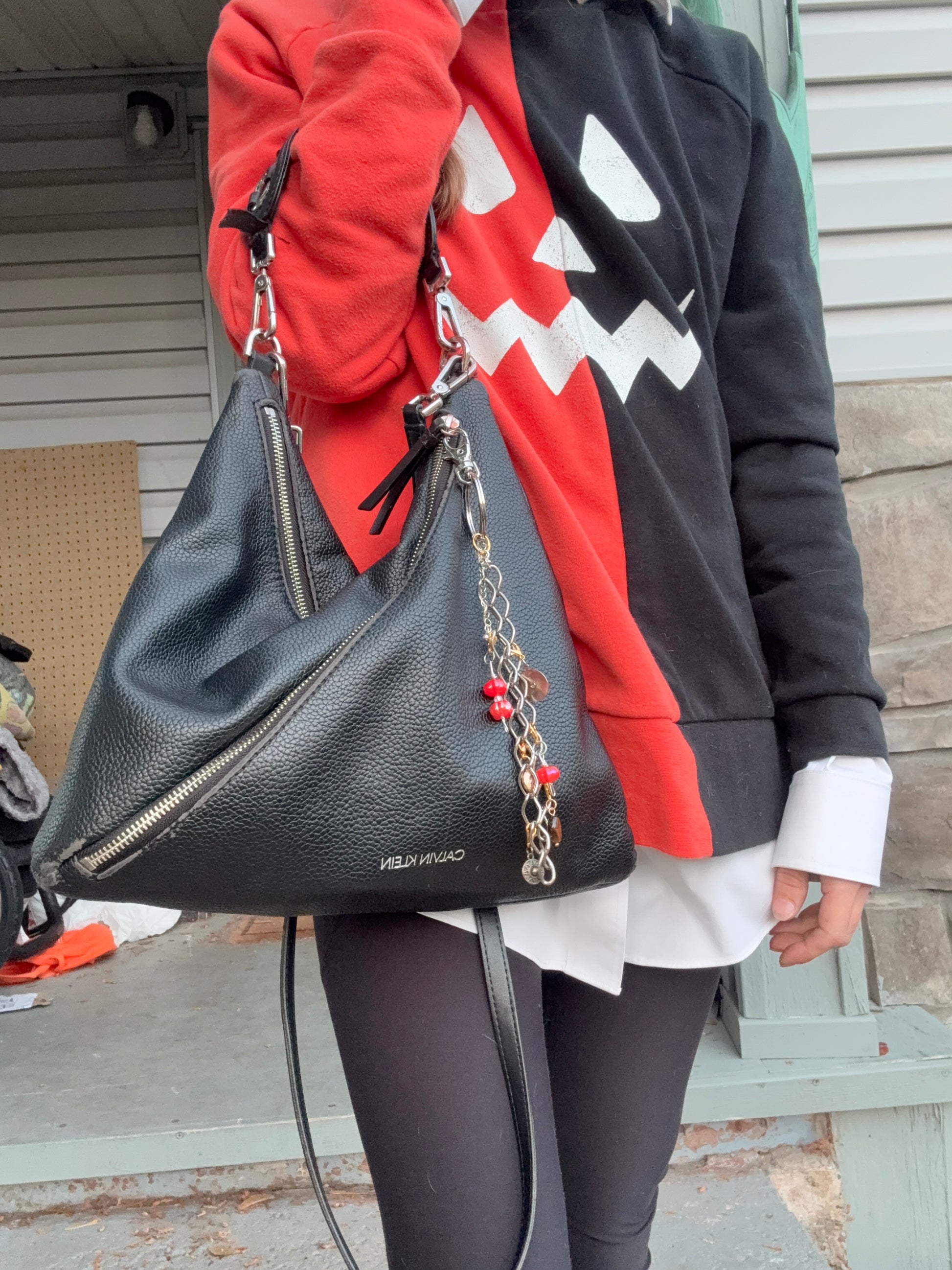 Made entirely from upcycled and thrifted materials, this piece is eco-conscious and full of character. The carabiner-style clasp allows for multiple uses — wear it as a keychain, bag chain, car mirror charm, or wrap it several times as a bracelet or wearable accessory.