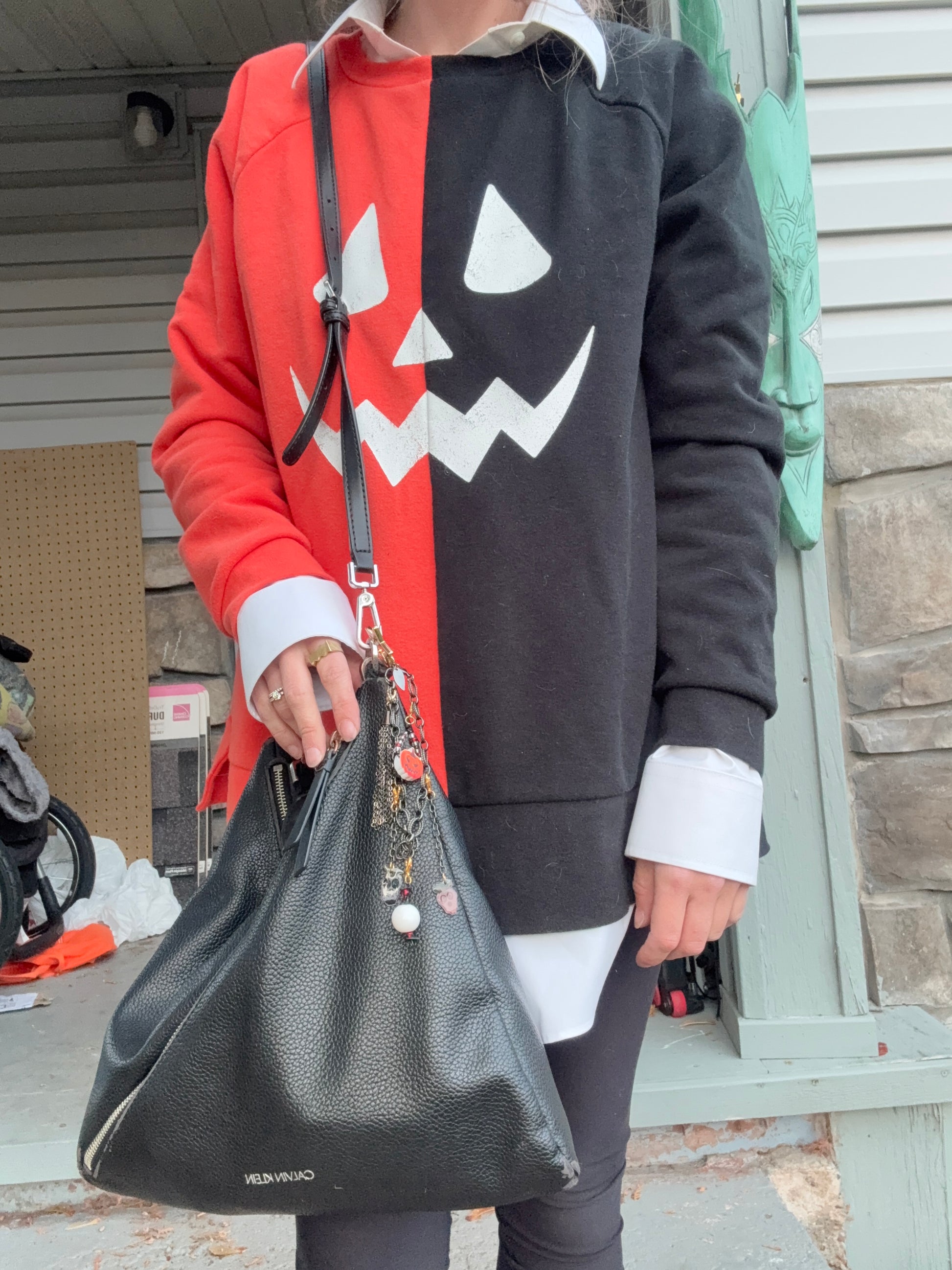 Bring a touch of whimsy and versatility to your accessories with this handcrafted multipurpose chain. Featuring a gold star carabiner clasp and black thrifted chain, it holds a playful mix of resin Boo Berry charms, handcrafted beaded charms, and thrifted charms, each carefully curated for a one-of-a-kind look.