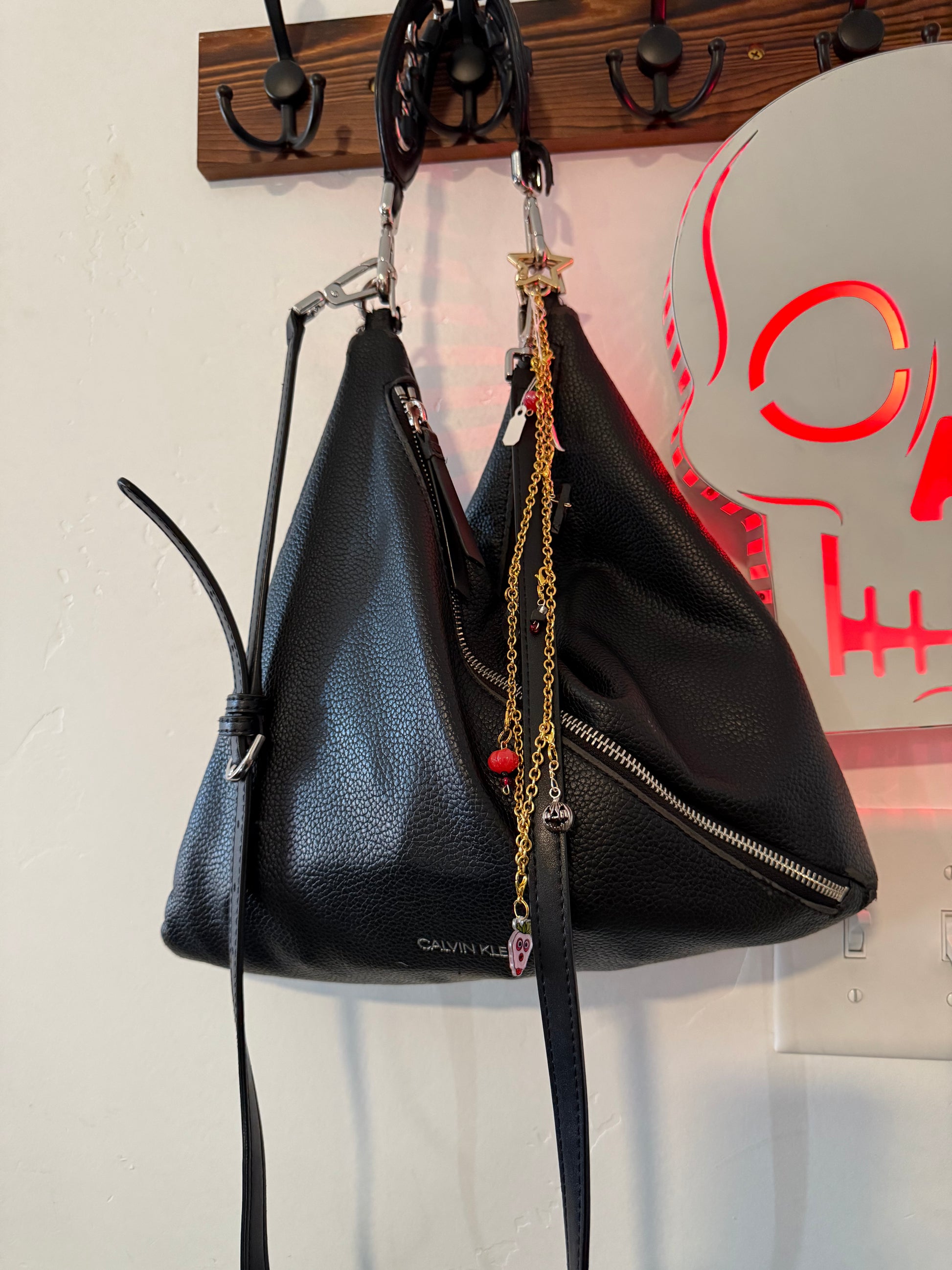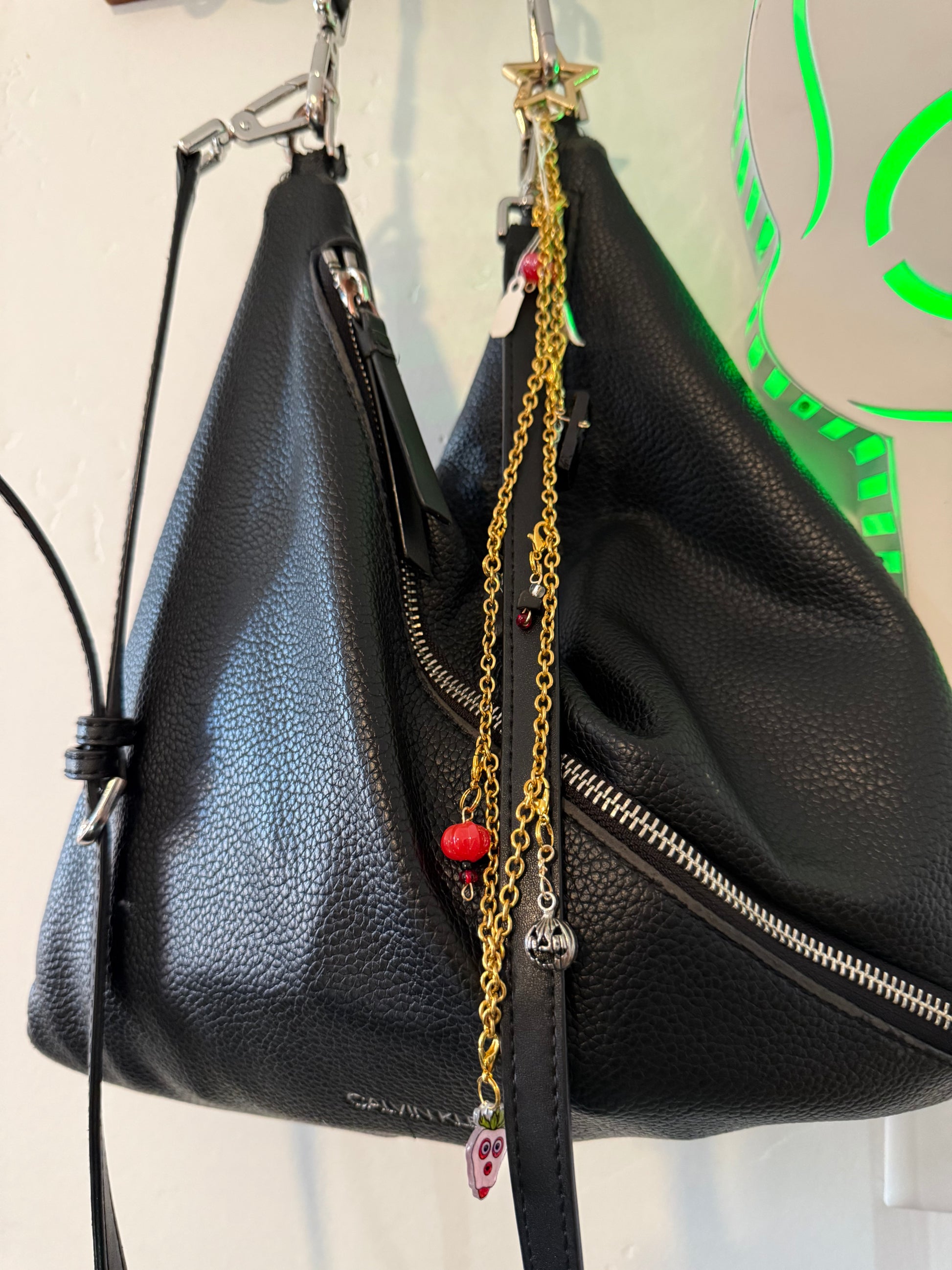 Crafted from a thrifted multi-link chain and secured with a heart-shaped carabiner clasp, this accessory is eco-conscious, one-of-a-kind, and perfect for layering. Its versatile design allows you to use it as a keychain, bag chain, car mirror charm, or wrap it multiple times as a bracelet or wearable statement piece.