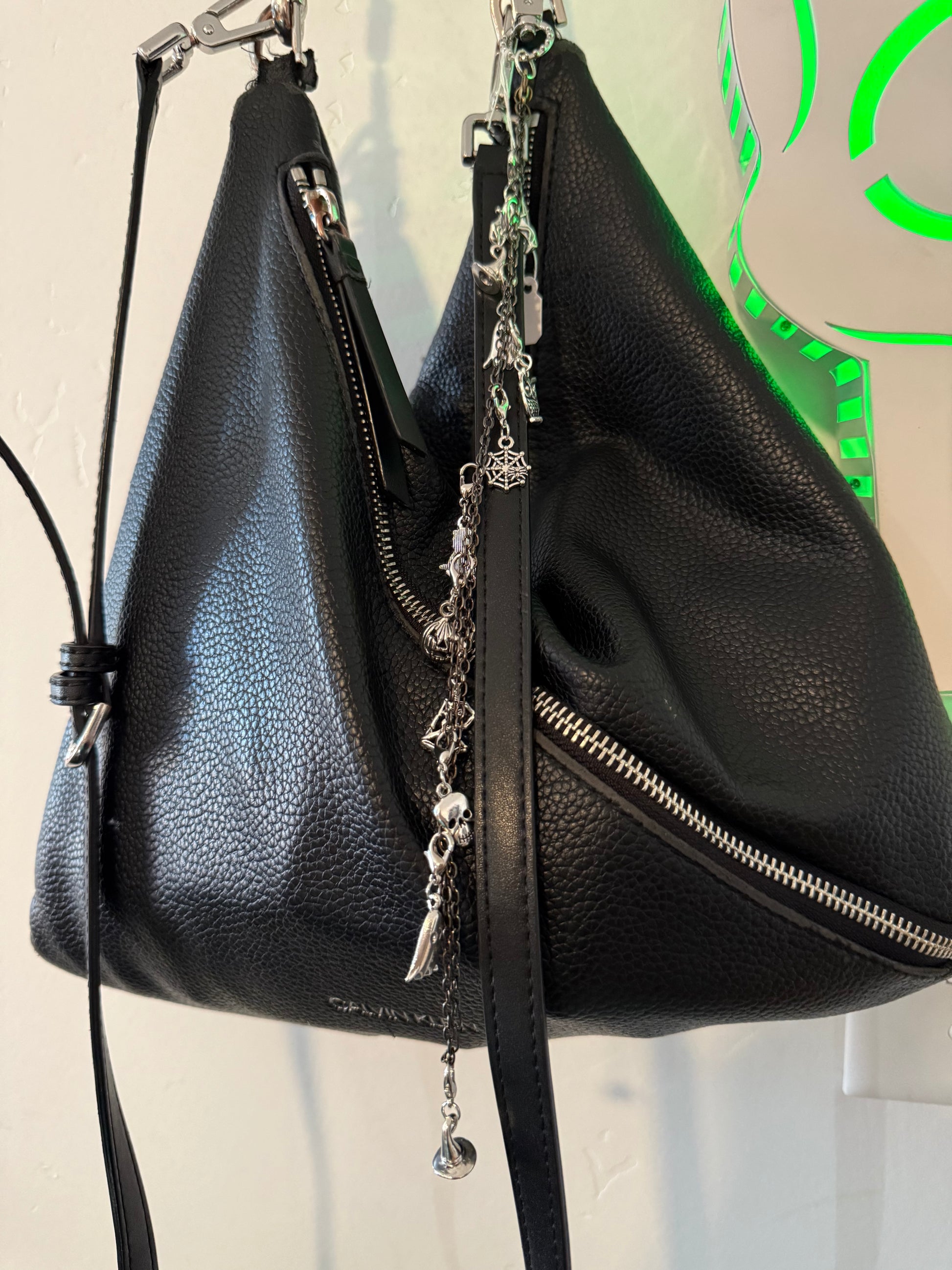 Made entirely from upcycled and repurposed materials, this piece is eco-conscious, one-of-a-kind, and full of character. The carabiner-style clasp makes it highly versatile — use it as a keychain, bag chain, car mirror charm, or wear it as a necklace or wrap-around charm bracelet for a unique, layered look.