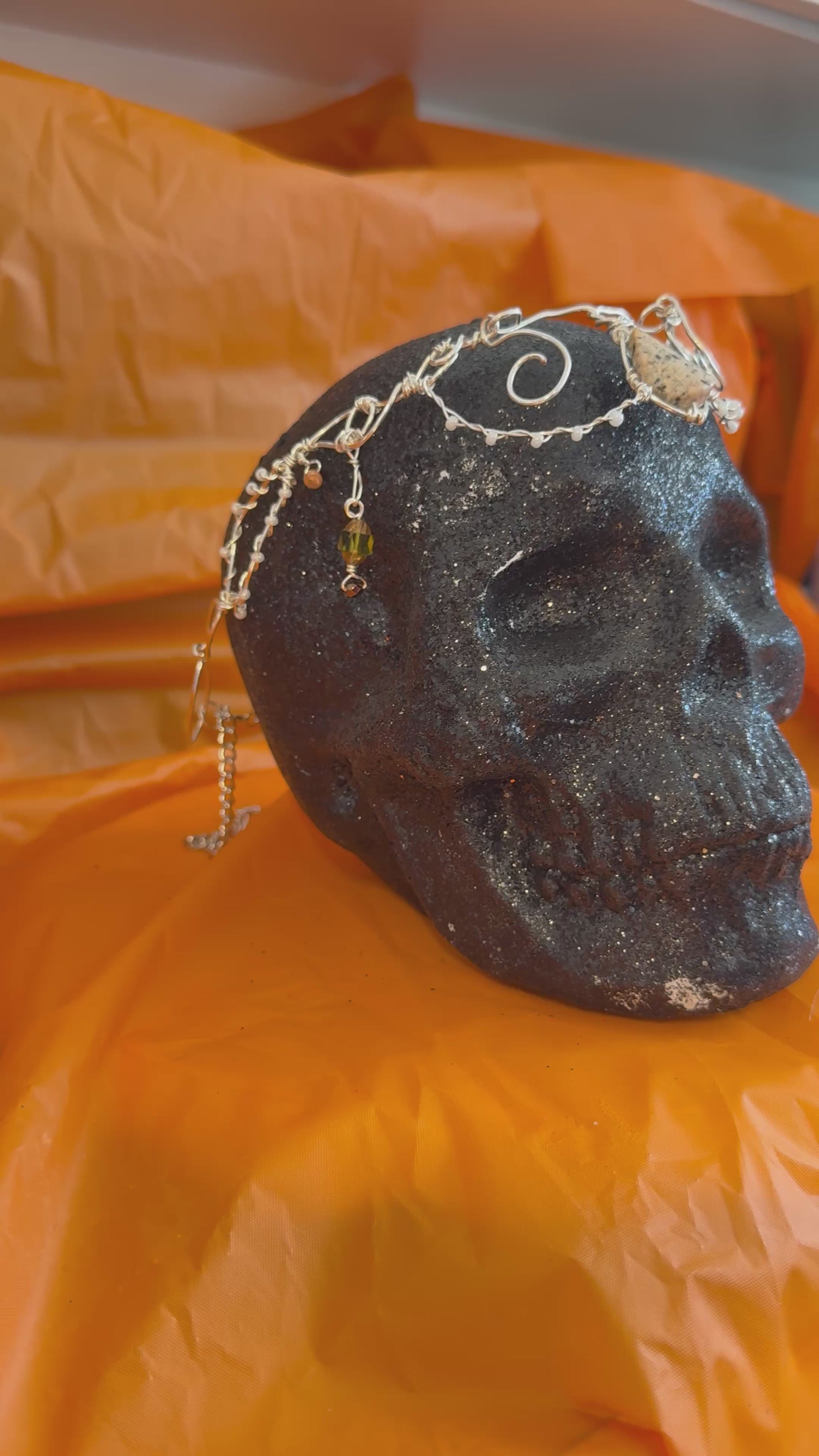 Each crown secures in the back with an adjustable chain, allowing for a perfect, comfortable fit for any head size. The semi-malleable metal gently shapes to your unique form, while the soft silver finish naturally ages with time, adding depth and quiet character.